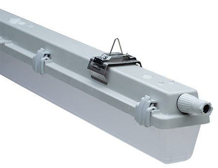 Für die Installation muss der Monteur alle Klammern öffnen, die Wanne abnehmen, den Geräteträger demontieren, das Kabel in die Leuchte einführen und an die Klemme anschließen, den Geräteträger mit der Fallsicherung wieder montieren und die Wanne wieder aufsetzen. Zum Abschluss werden die Klammern wieder verschlossen. Auch hier erfolgt die Montage über die Halteklammern des FastFix Schnellmontagesystems, welche variable Befestigungsabstände ermöglichen.