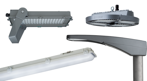 In das System lassen sich alle Leuchten mit DALI-Funktion integrieren. Dazu gehören alle Leuchten aus unserem Lieferprogramm mit der Bezeichnung DIMD sowie DALI-fähige Leuchten anderer Hersteller. DIMD-Leuchten sind in vielen Produktbereichen verfügbar – von Ex-Leuchten über Feuchtraum- und Hallenleuchten bis hin zu Außenleuchten.